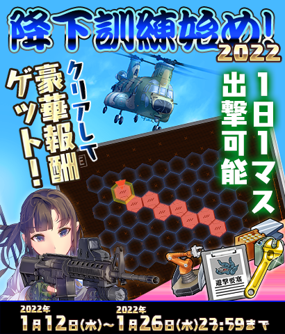 現在開催中の特別MAP「降下訓練始め!」について、実施期間を1/26まで延長とさせていただきます。