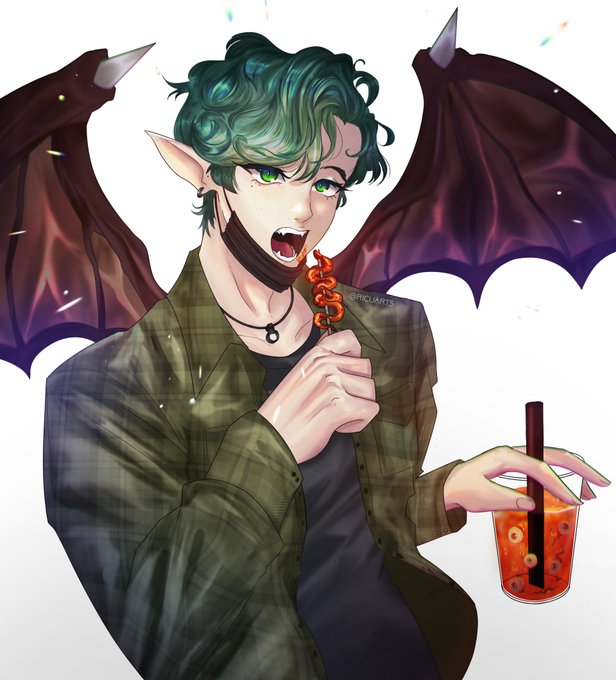 Manananggal snacking on isaw and eyeball boba 🦇 #ricuarts #artph