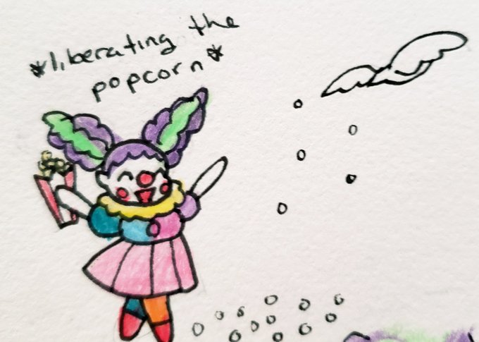 [#horrorhigh] An idea I had rolling around in my head for a while of Tulip getting confused by popcorn 🍿
