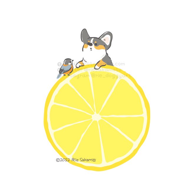 レモンの日のコーギーと野鳥たち #レモンの日