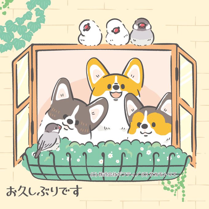 文鳥の日の文鳥とコーギーたち こちらのイラストはお仕事で描かせていただきました #文鳥の日