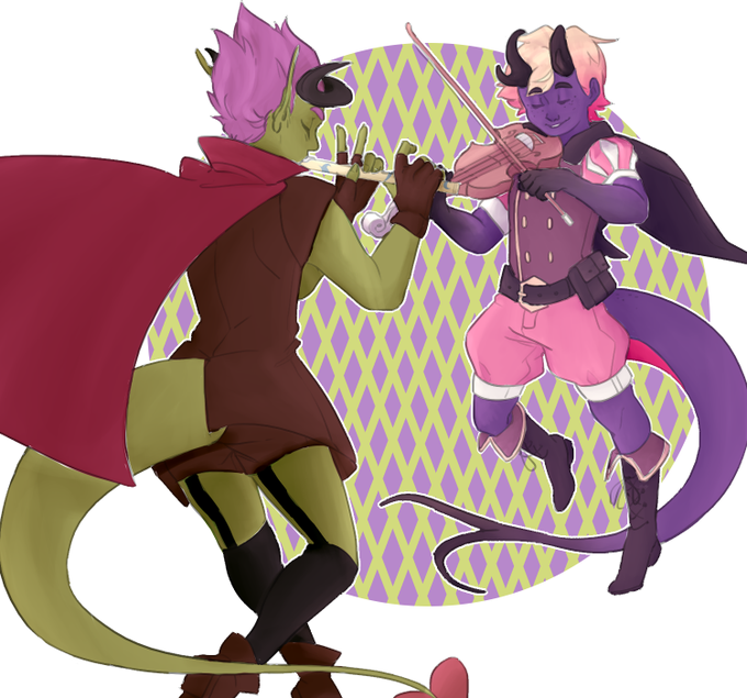 my latest commission! me n a friend have dnd characters who are Close and he wanted them hangin out so i did my best!