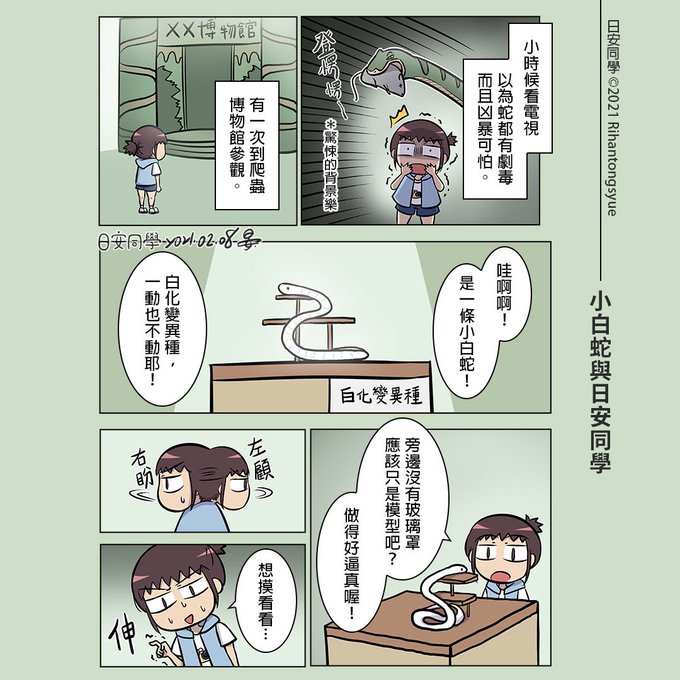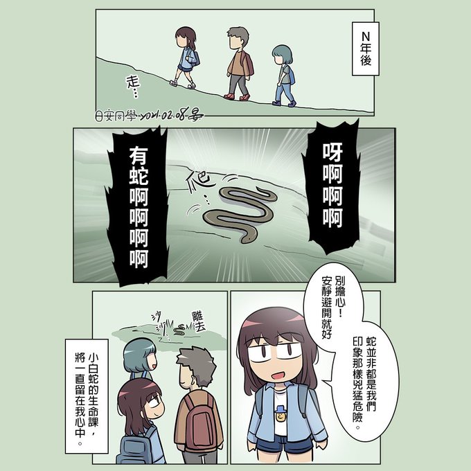 【漫畫】小白蛇與日安同學 童年時的故事,第一次也是目前唯一一次的摸蛇經驗,同時也對蛇有更多的認識,不再恐懼。 2021 / 02 / 08 by日安同學 #原創 #漫畫 #童年 #蛇 #生命 #教育 #日安同學與動物們 #日安同學 #manga #漫画 #taiwan #台灣 #動物 #animals #snake #台湾