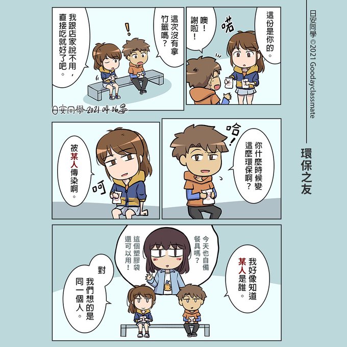 【日安同學漫畫】環保之友 說到環保就會想起某人。 by日安同學 #原創 #漫畫 #日常 #環保 #朋友 #日安同學 #席波 #達馬 #漫画 #台湾 #taiwan #manga #comics #OriginalContentArtist