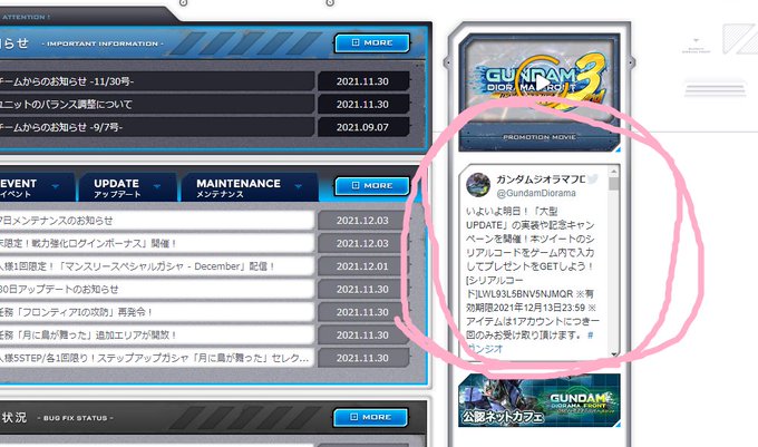 その TOPページ内にある 『公式ツイート枠』を押すと、