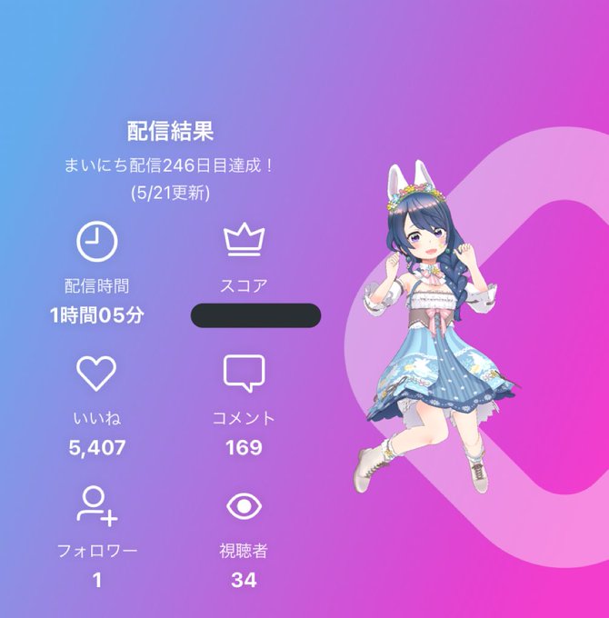 今日もありがとー!!! ガチャは見事‼️ ウィッグが被りました😢 対あり! でも、いっぱいお話できて楽しかった🥰 また明日👋