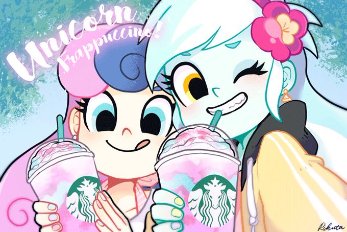 気が向いたら描くリクエストから2つまとめて! ⑦MLP:EQG ライラ&ボンボン ⑧MLP:EQG アップルジャック&レインボーダッシュ 日本でもユニコーンフラペチーノ発売してくれー!! #りくたの自由帳