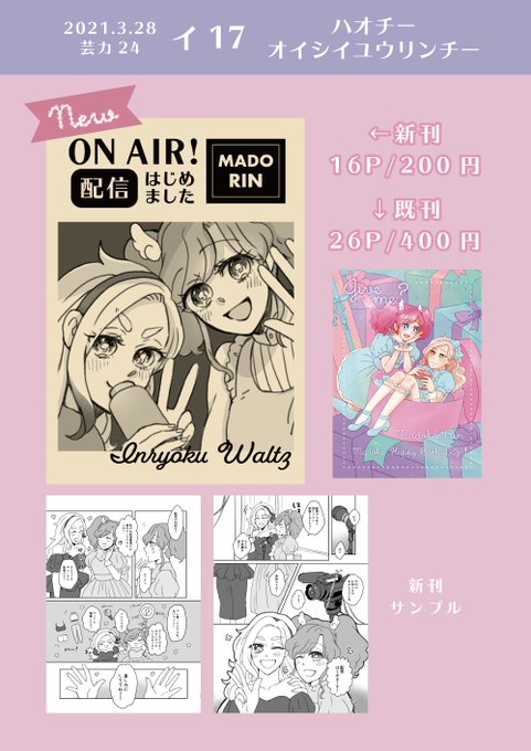 2/8まど凛本の新刊サンプル(1/2) まどかちゃんお誕生日本です🎂まどかちゃんがプレゼントとして凛ちゃんにおねだりしたのは…?⚡️サニーさんもいっぱい登場するよ🌈⚡️ B5/26P/400円。当日はア05【Grrr!】さんのスペースに委託させて頂きます😊よしなに〜🙌 #芸カ21