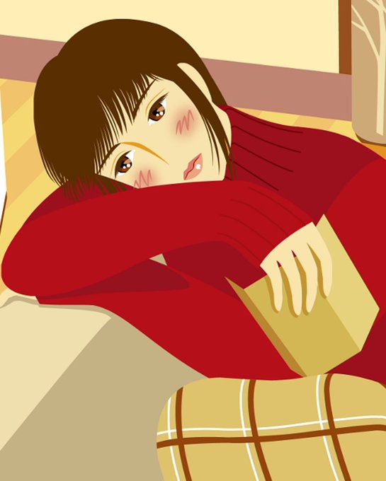 #ニットの日 。私のポートフォリオから「 snow 」。セーターは絵描きの私にとって魅力的なアイテムの一つです。 #Illustration #イラスト #女性画