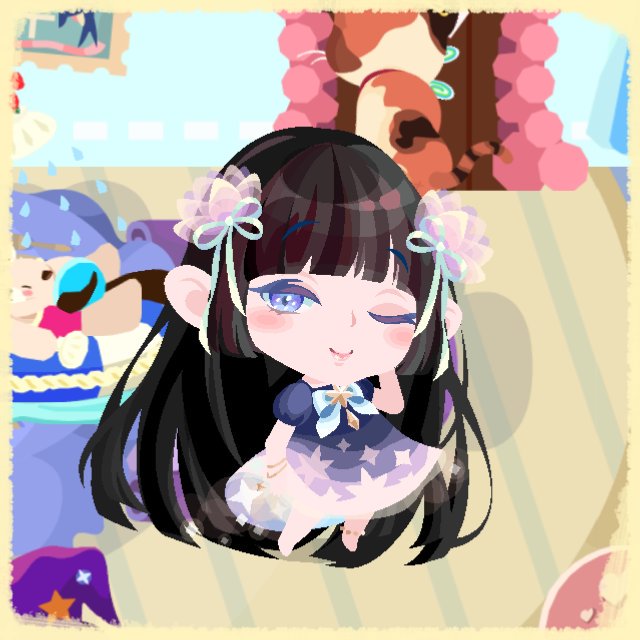 こんがり食パン、当たった!あと、涙も当たったから、うるうるしてる。頭の上のひつじさんは、ウトウトしてる。このコーデ、けっこう気に入った♡#ポケコロ