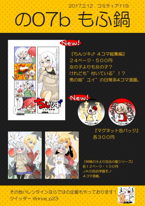新刊の男の娘4コマや缶バッジ、百合4コマを販売しております。