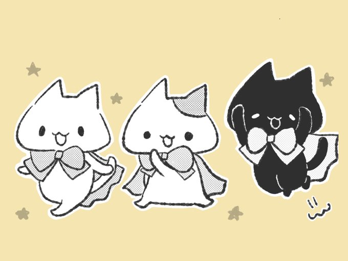 みんなでほっぺぷにぷに(っ•₃•c)♡ #イラスト #ゆるいイラスト #ねこ #モノクロ