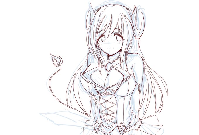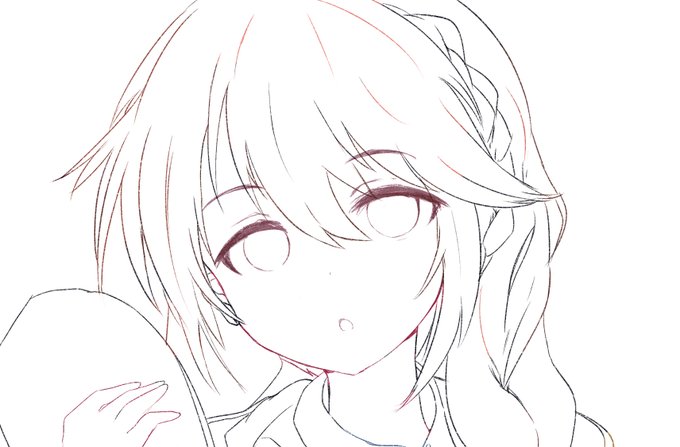 結局ラフがきから目の書き方を変えてしまう (上目遣いが描きたくて) けどなんかちょっとこう、もうちょっとあるだろう的な 適当に悩もう
