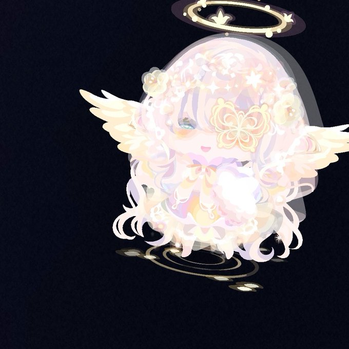 【優雅に羽ばたく髪翼】 ピンク×白コーデ\♡︎/︎ 差し色に金色を少しだけ取り入れました_( _´ω`)_ ガラストレーンとパニエでボリュームup〜!! #ポケコロ #ポケコロコーデ