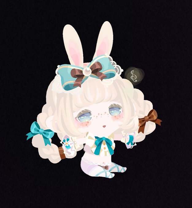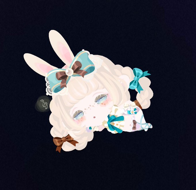 リボンとの色合いを考えてコーデすれば、この髪も可愛く使えます🐰 青×茶 の組み合わせ結構好きかも( 'ཫ' ) #ポケコロ