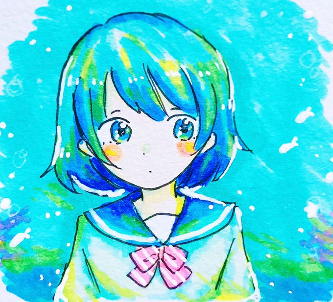 #見た人もなにか無言で青い何かをあげる ( ๑´•ω•)੭_□ ソッ… ( 昔の絵 )