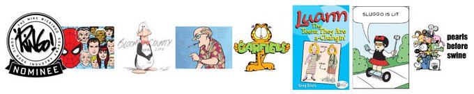 Vote for the Best Comic Strip or Panel in the 2019 @ringoawards : Amazing Spider-Man, Stan Lee/Larry Lieber, @KingFeatures , @bloomcounty , Berkeley Breathed, @AndrewsMcMeel , Doonsbury, @GarryTrudeau , @AndrewsMcMeel , @Garfield , Jim Davis, @KingFeatures , ...