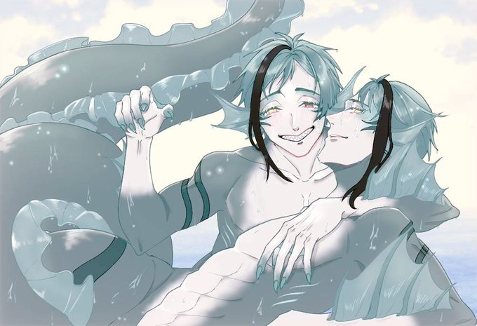 人魚リーチ描きたくなったので描いてはみたが色塗り苦手だぁ... #ツイステファンアート