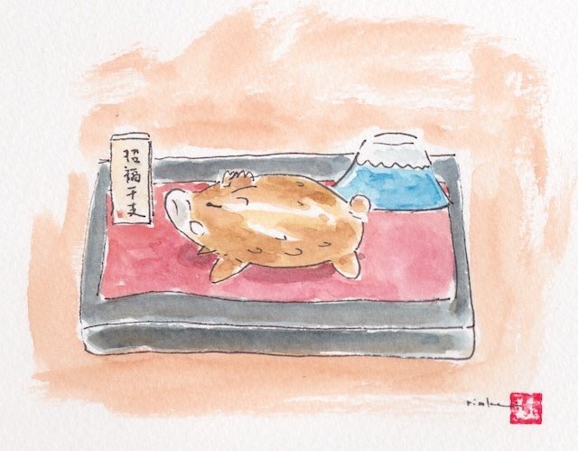 あけましておめでとうございます。 新年1枚目は毎年恒例の干支の置物から。 #水彩 #謹賀新年