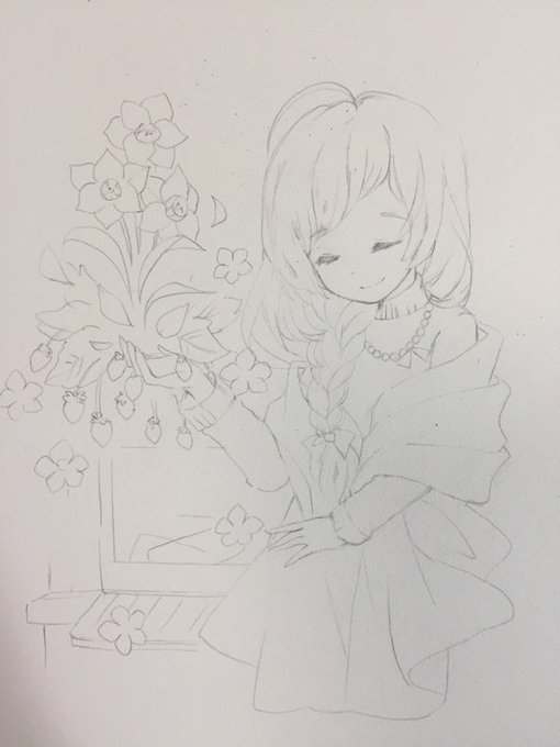 で、毎回遅刻のワンドロです(o;▽;)いつか一時間で完成する日が来るのか。お題のカラー、ピンクを入れたのに消えました(;´ρ`)暖炉、水仙、いちご。春を創るひと。