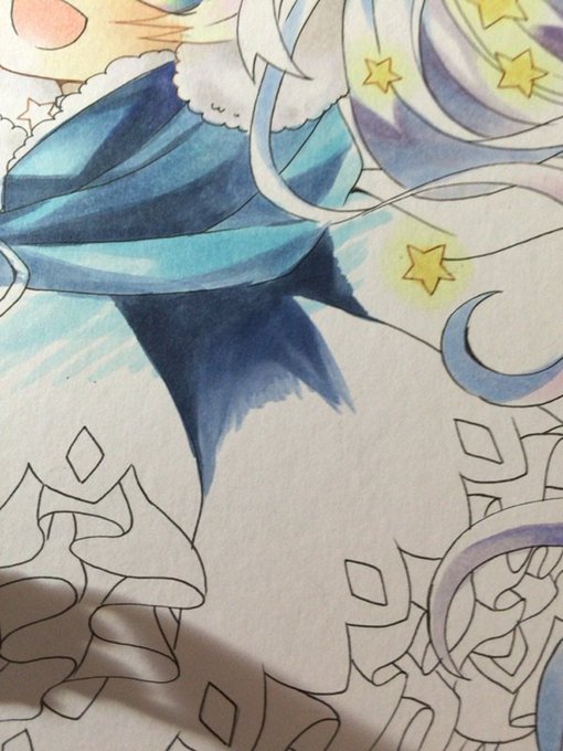 服も様子見つつすすめていくのですが、ザクッと下塗りして、B97をぬって、B95を塗って、B21やB52をぬって、上の方は水色にしたかったのでB01をぬって様子をみます٩( ´ᆺ`)۶