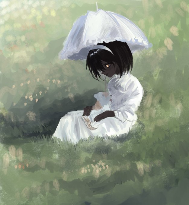 #私はこういう絵師です見た絵師全員参加 黒肌に白い服を纏った少女がすき 印象派絵画みたいな雰囲気の絵もっと描きたい