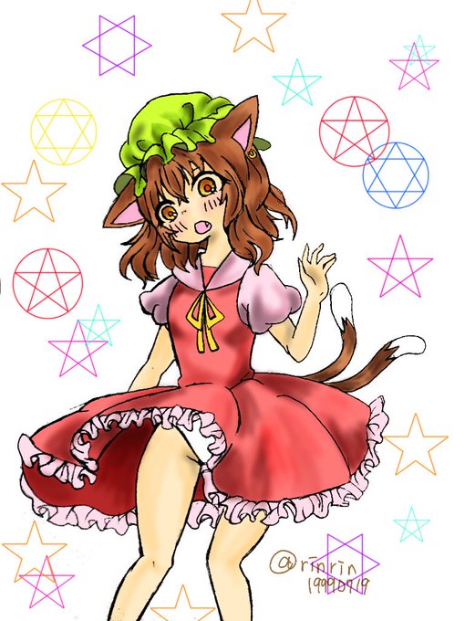 #深夜の真剣お絵描き60分一本勝負 #東方版 ちぇえええん! フリルが間に合わなかった…
