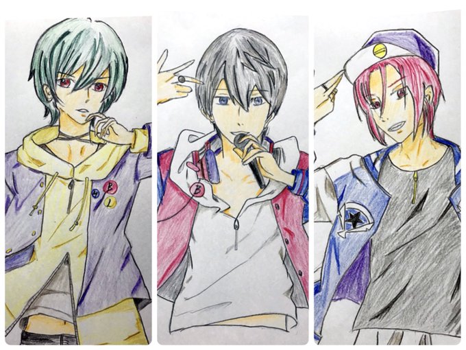 ヒスマイ 岩鳶ビジョン 色塗り終わりました💦 目がおかしくなりそう🤣いっぱい塗り間違えありですみません。 凛ちゃんの髪と次男の帽子の裏の色被るので白にしました。 #七瀬遙 #松岡凛 #桐嶋郁弥 #描いてみた #山田三兄弟パロ