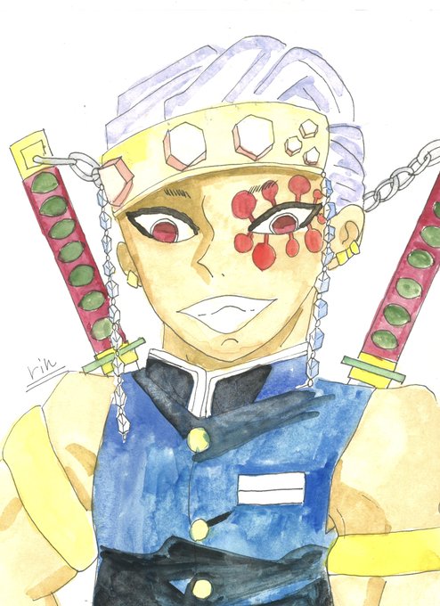 鬼滅の刃、宇髄天元さんを描いてみました 顔彩で色付けたよ #イラスト #鬼滅の刃 #宇随天元 #顔彩