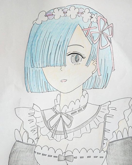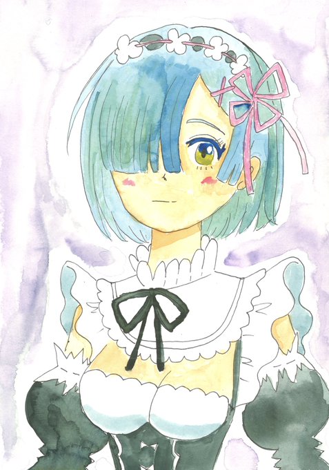 リゼロのリムを透明水彩でリメイクしてみた 進歩してるかなぁ 左、2020年1月 真ん中、2021年1月 右、2022年1月(今日) #透明水彩 #色鉛筆 #イラスト #リゼロ #ゼロから始める異世界生活 #レム #リメイク