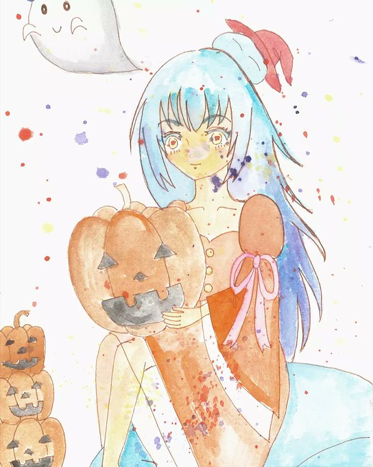 ミリムを描いてみた 透明水彩で絵の具飛ばしてみたらなんか汚いwww はるアトリエさんみたいにはいかんなぁ(。ŏ_ŏ) #透明水彩 #イラスト #転生したらスライムだった件 #ミリム