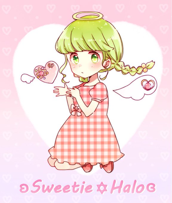 ʚSweetie✡Haloɞのイメージキャラクターと台紙とロゴが完成致しました(*∩ω∩) 大好きな夏野ちゃん(@AM_log9)のイラストです!台紙は今後のイベントや通販の梱包に⋆。˚キャラクターの名前をちょっぴり募集します♡