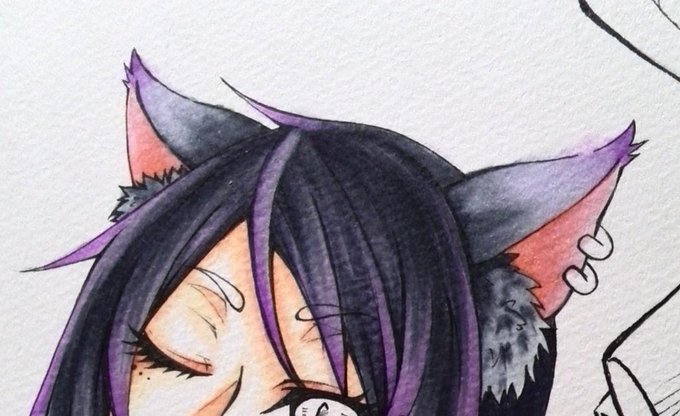 @rio_569 『獣耳塗り2』 髪で使った色を使います! 一番濃い色ではなく、二番目の影色で、影を付け毛先を塗りぼかしていきます。それで完成 髪と獣耳、両方合わせての完成が四枚目です