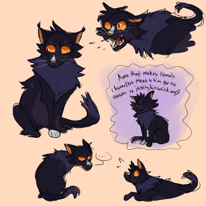 @melonix_ my old flamepaw from before he was a protag was warm toned (and tortoiseshell) but i flipped his hue and minimised the ginger when he became a character whose whole aspect was that he didnt have any ginger on him yknow
