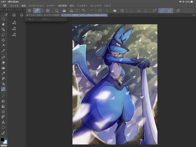 #イラスト #ポケモン #ルカリオ 風のエフェクトの練習も兼ねて