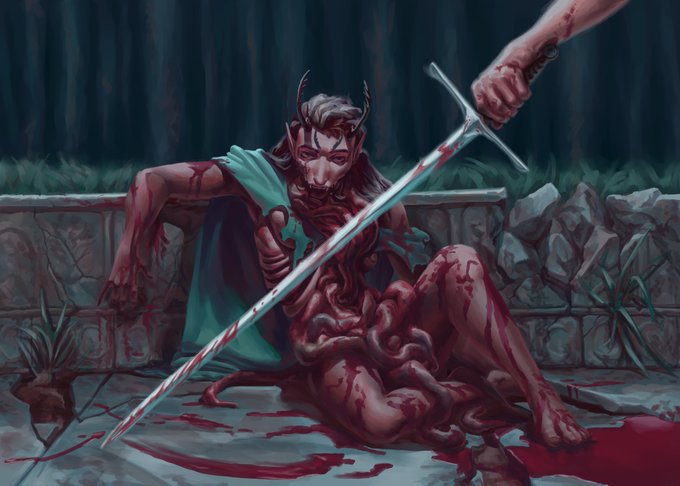 tw body horror n gore n blood :,V painting dnd ocs in edgy scenarios, as always