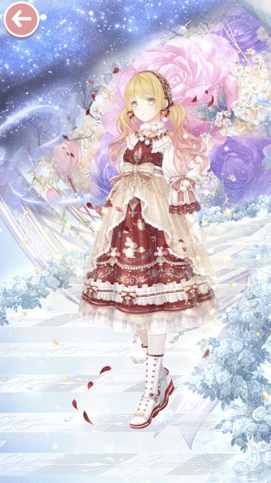 りあらいず様 @REALIZE__Nikki 企画参加です(*'▽'*) 私は自分の誕生石のガーネットをイメージしました 『ガーネットに成りきれず花弁と共に散る』 #ミラクルニキ #コーデの宝石箱