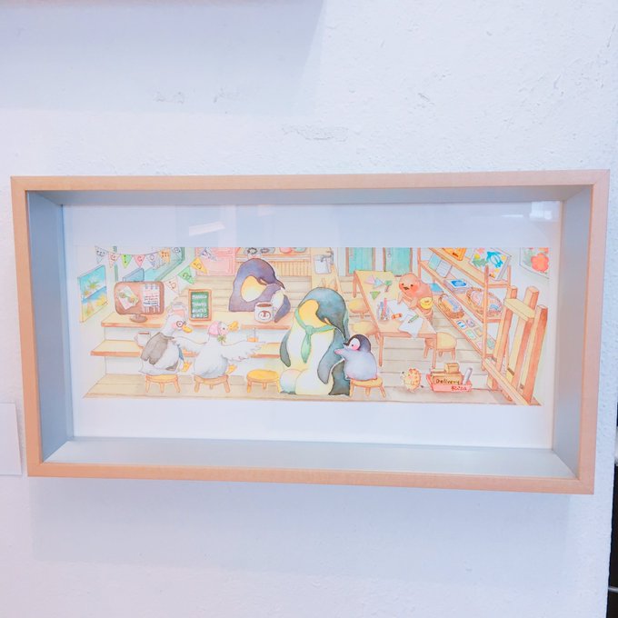 【個展残り1日です❣️】 今日はたくさんの方にお越しいただき、たいへん賑やかな1日となりました✨ 原画はこちら3点をお迎えいただきました🐧 皆さま思い思いの理由でお気に入りを選んで頂き、たいへん嬉しいです🙇♀️ 明日日曜日で最終となります。