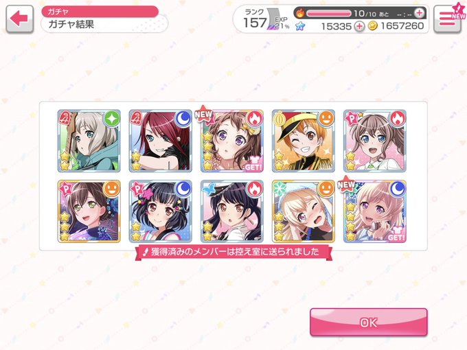 @Riko_kohara 天井分石貯めていましたが、 50連で2人ともお迎えできました❤️ #ガルパRAS登場