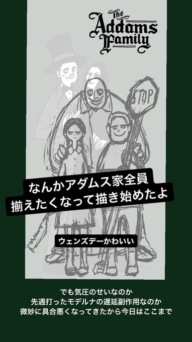 ファミリー全員描けました\(^o^)/⚰ #アダムスファミリー #AddamsFamily