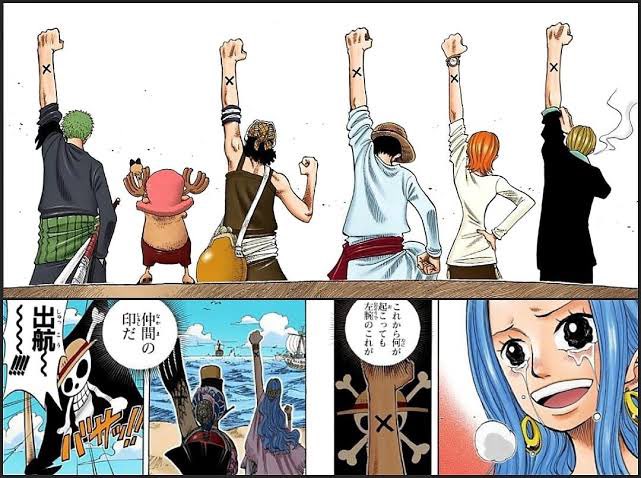昨日ワンピース見に行ったんだけど このシーンの時、シャンクス達が右手上げて笑ってるんだけど アラバスタ編の仲間の印に近い物を感じて1人勝手に感動してた