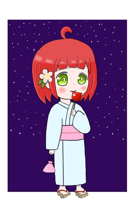 浴衣姿のりんちゃんとりんご飴 #宮園りん #ぷるりんあーと #七夕 #浴衣の日