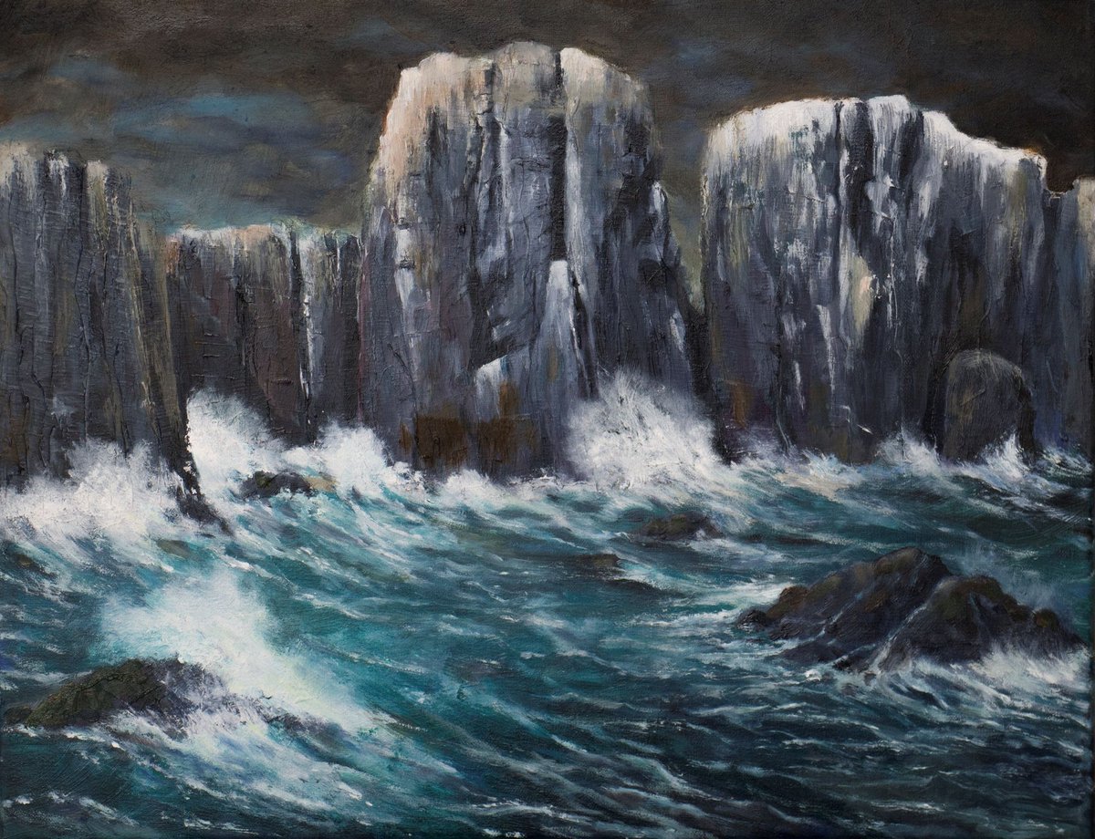 The Turbulent Coast. My oil painting, inspired by a visit to Embleton Bay, Northumberland. A beautiful area to visit. #Northumberland #art #artwork #painting #northumberlandcoast #seascape #surf #sea #waves