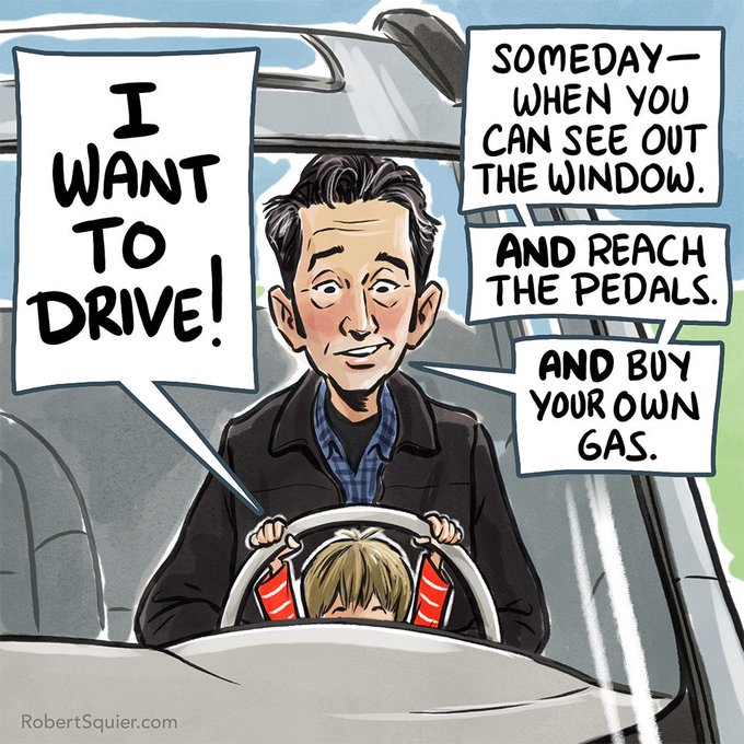 He'd be the next Mario Andretti -- if only I'd let him take the car out of park. #ToddlerLife #parenting #kidlitart