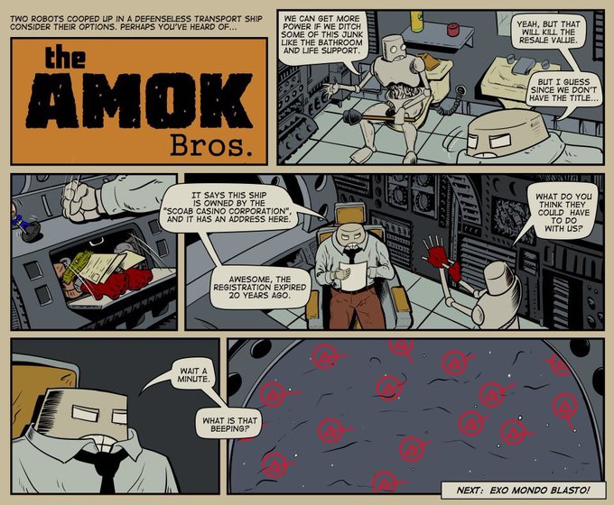 @SodaTelepaths Hello! I’m Jim and I make The Amok Bros., a sci-fi space opera that two robots revolve around. https://t.co/L9aNGRuoKW
