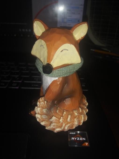 Doodled this picture of my fox statue with a hair scrunchie on it I thought looked like a scarf uwu