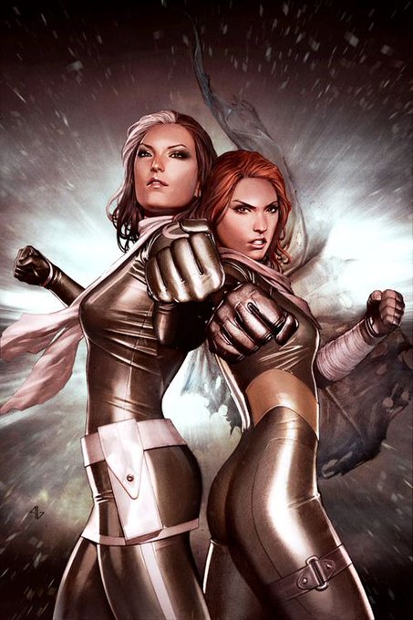 @Zeus09998580 @EvelyneLiguori @Tybaldo82 @AdamStiebing @pheltzcomics @ronniehowlett3 @BabeCollect @M4rySand #MarvelGirls artist @Adi_Granov Rogue and Hope.