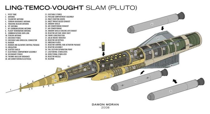 冥王計画(Project PLUTO) 。過去に原子力推進巡航ミサイルに複数の核爆弾を搭載し「複数の目標に配達する」という構想はあるにはあったけれど、航続力が有限の極超音速兵器でこれをやるのは難しいと思う。