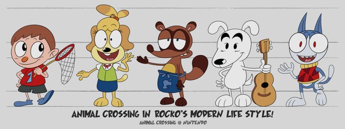 Villager, Isabelle, Tom Nook, K.K. Slider and Rover of Animal Crossing in Rocko’s Modern Life style!