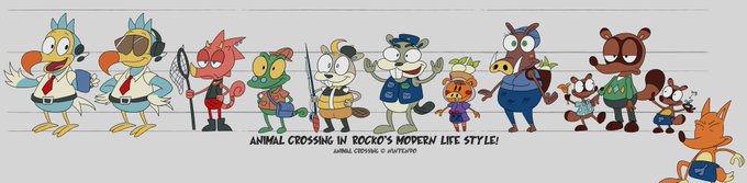 Orville, Wilbur, Flick, Nat, Chip, C. J., Daisy Mae, Joan, Timmy and Tommy with Tom Nook... and Redd of Animal Crossing in Rocko’s Modern Life style!